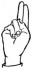 На ћирилици написано РАДНА РАДОЈКОВИЋ састоји се из 15 слова [?]. Исписано ћириличном једноручном азбуком за глувонеме: